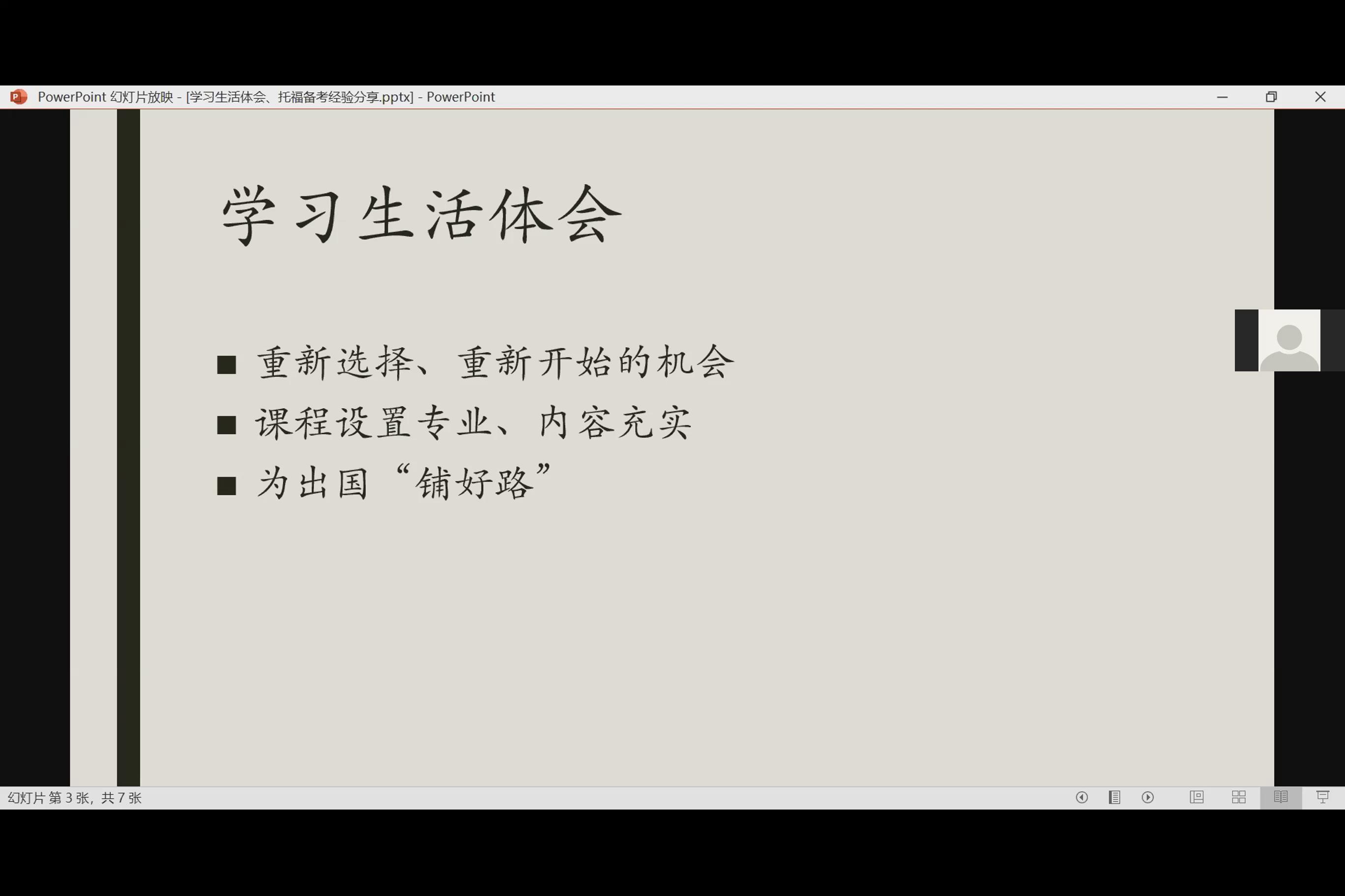 最后,推介会邀请到课程班美国马里兰大学项目在读生高驰(本科:2016级厦大经济学院金融学国际化试点班)为大家分享了在WISE近一年来的学习生活体会。他认为课程班是同学们重新选择、重新开始的机会,课程设置专业、内容丰富,能够为同学们出国“铺好路”。对于托福取得了107分的高分,高驰也在线分享了他的托福备考经验。