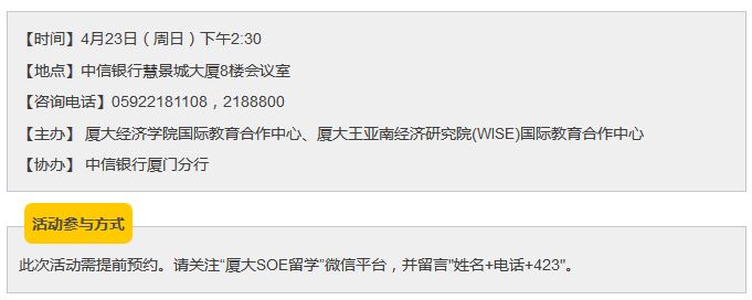 完胜留学,你只差这一课——厦大经济学科携手中信银行厦门分行带你任性规划留学路!
