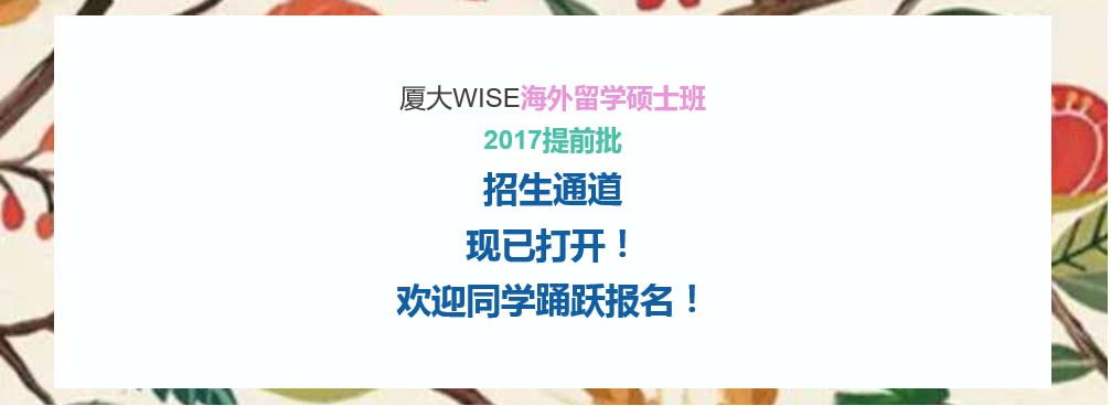 招生啦 | 厦大WISE海外留学硕士班2017提前批招生启动!!