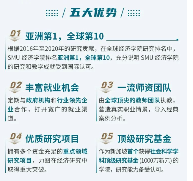 新加坡管理大学(SMU)是新加坡三所著名公立大学之一,是新加坡政府立足于二十一世纪的人才需求、花巨资精心打造的国际一流商科和社会科学类高等学府。该校由新加坡政府参照美国常春藤名校之一—— 宾夕法尼亚大学沃顿商学院而创办。